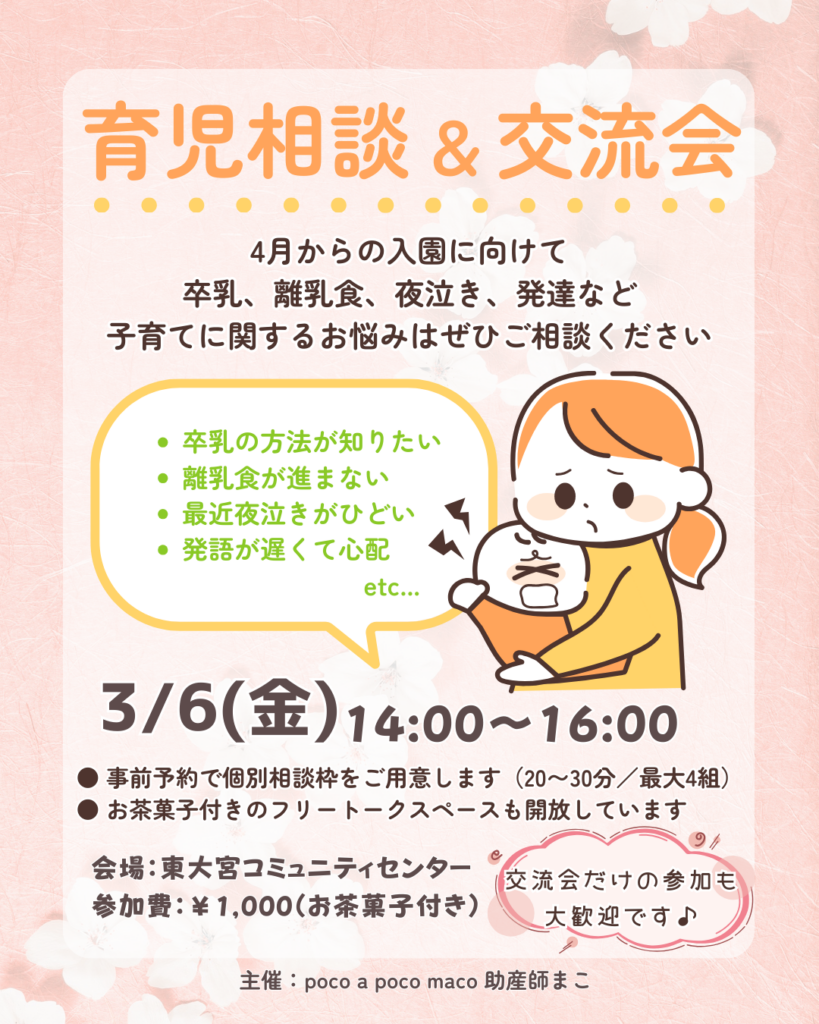 3月は『育児相談会&ママの交流会』を開催することにしました🌸