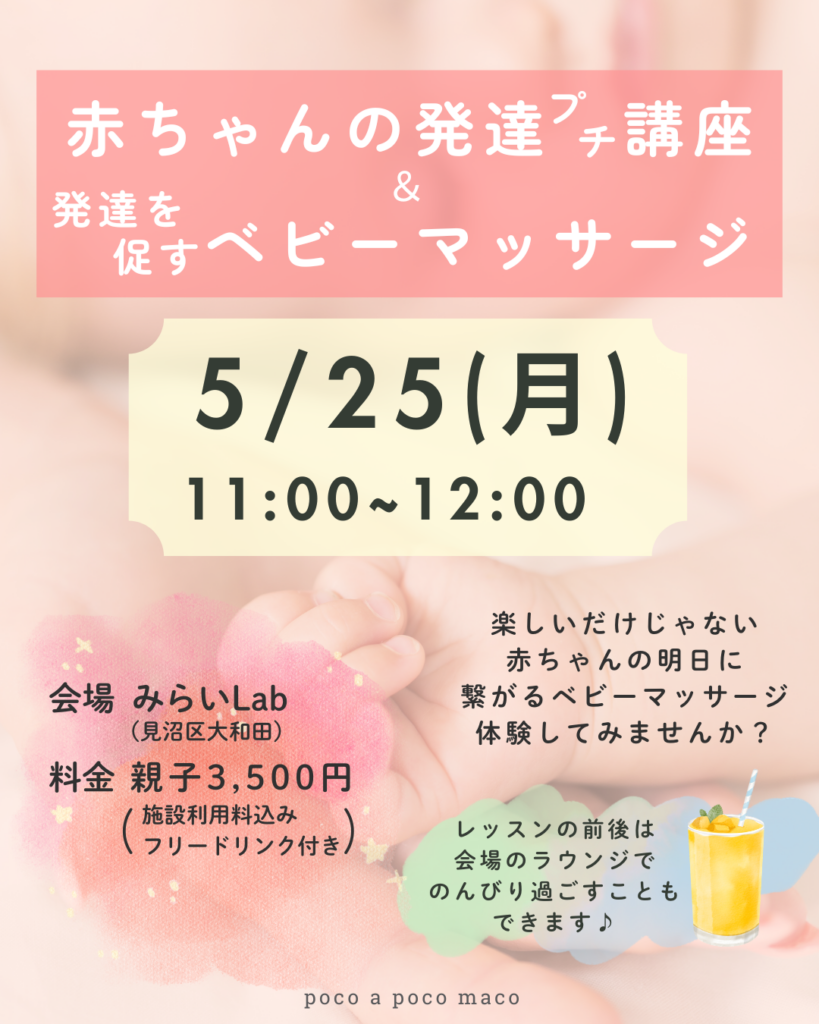 2026/5/25(月)【対面】赤ちゃんの発達プチ講座&発達を促すベビーマッサージ