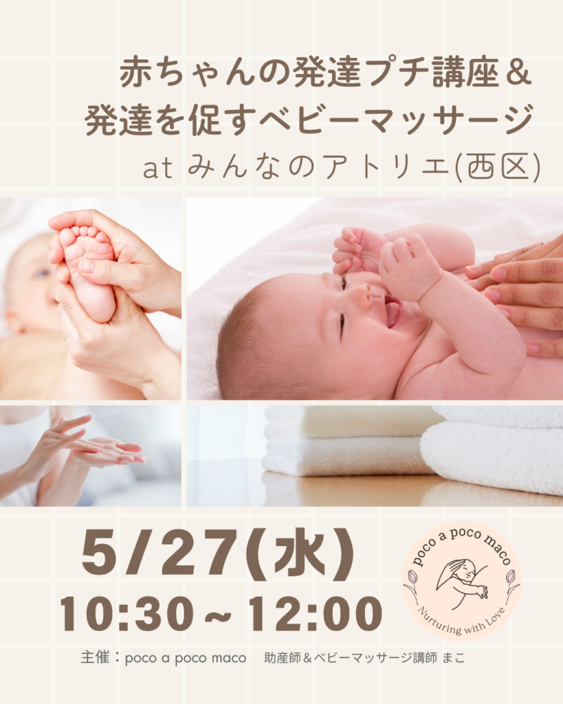 poco a poco macoで大人気の『赤ちゃんの発達を促すベビーマッサージ教室』のご案内です♪